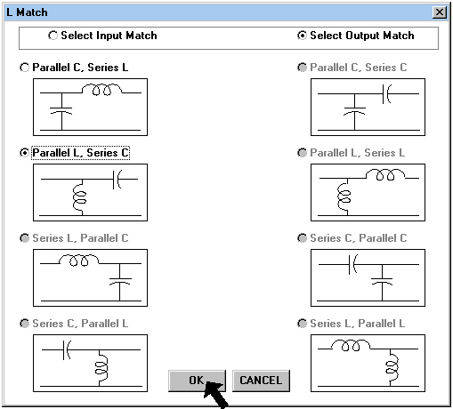 In this example use Series C/Shunt L and Shunt L/Series C.