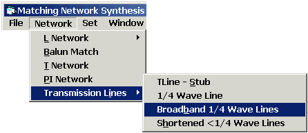 Step 2: Select Broadband ¼ wave Lines from the Network menu.