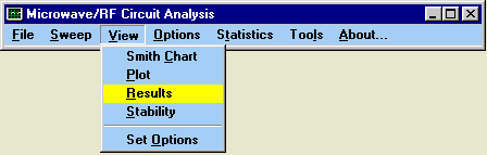 Step 5: Select View Results to see a table of up to 18 circuit responses. Depending on the prior selection of options, the results can be displayed in Decibels (dB) or linear formats.